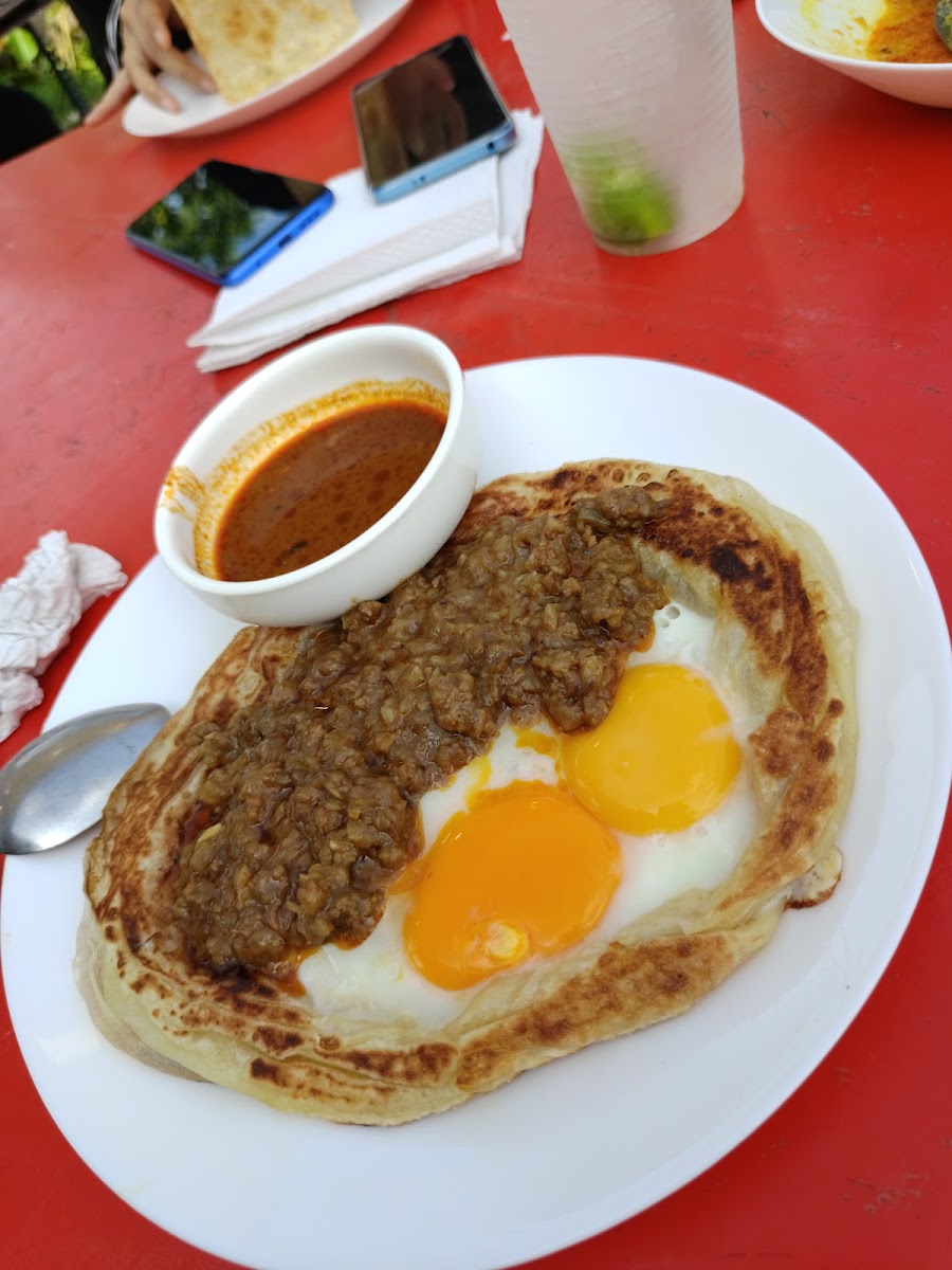 For those who enjoy a little extravagance, the Roti Canai Kahwin (MYR 4.00) serves up a harmonious duo of the crispy kosong and egg varieties, while the Roti Canai Tampal (MYR 2.50) features a perfectly cooked egg laid atop the fluffy bread, making for a breakfast or snack that truly satisfies.